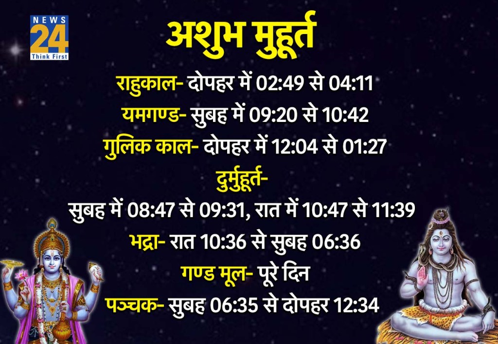 नक्षत्र की बात करें तो इस समय रेवती चल रहा है, जो दोपहर 12:34 मिनट तक रहेगा. रेवती नक्षत्र के समाप्त होते ही अश्विनी नक्षत्र का आरंभ हो जाएगा, जो कल सुबह तक रहेगा. इसके अलावा दोपहर 12:24 मिनट तक गर करण रहेगा. गर करण के समाप्त होते ही वणिज करण का आरंभ होगा, जो देर रात 10:36 मिनट तक रहेगा. वहीं, दिन के अंत में विष्टि करण रहेगा.