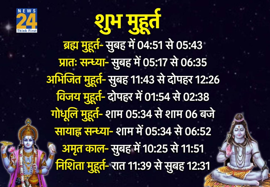 आज दोपहर 03:42 मिनट तक वज्र योग रहेगा, जिसके बाद सिद्धि योग का आरंभ होगा. सिद्धि योग कल सुबह तक रहेगा. इसके अलावा आज दोपहर 12:34 मिनट से कल सुबह 06:36 मिनट तक सर्वार्थ सिद्धि योग और अमृत सिद्धि योग रहेगा. वहीं, रवि योग और आडल योग आज सुबह 06:35 मिनट से दोपहर 12:34 मिनट तक रहेगा.