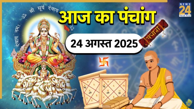 Aaj ka Panchang 24 August 2025: आज 24 अगस्त 2025 को कोई त्योहार या व्रत नहीं है, लेकिन कई प्रभावशाली योग का निर्माण हो रहा है। प्रत्येक योग का सभी राशियों पर गहरा प्रभाव पड़ेगा। द्रिक पंचांग के अनुसार, आज सुबह 11:48 मिनट से लेकर देर रात तक भाद्रपद माह की शुक्ल पक्ष की द्वितीया तिथि रहेगी। हालांकि, द्वितीया तिथि से पहले प्रतिपदा तिथि रहेगी। आइए अब जानते हैं 24 अगस्त 2025 के शुभ मुहूर्त, काल, योग, करण और ग्रहों की स्थिति आदि के बारे में।