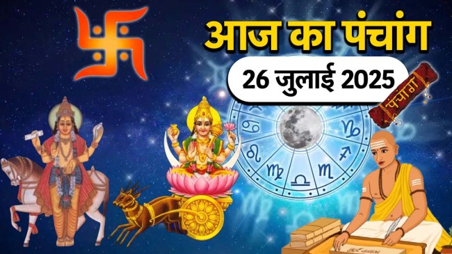 Aaj ka Panchang 26 July 2025: рдЬреНрдпреЛрддрд┐рд╖ рд╢рд╛рд╕реНрддреНрд░ рдПрдХ рдкреНрд░рд╛рдЪреАрди рд╡рд┐рджреНрдпрд╛ рд╣реИ, рдЬрд┐рд╕рдореЗрдВ рдкрдВрдЪрд╛рдВрдЧ рдХрд╛ рдЦрд╛рд╕ рдорд╣рддреНрд╡ рд╣реИред рддрд┐рдерд┐, рджрд┐рди, рдпреЛрдЧ, рдирдХреНрд╖рддреНрд░ рдФрд░ рдХрд░рдг рдХреЗ рдореЗрд▓ рд╕реЗ рдкрдВрдЪрд╛рдВрдЧ рдмрдирддрд╛ рд╣реИ, рдЬрд┐рд╕рд╕реЗ рдкреВрд░реЗ рджрд┐рди рдХреЗ рдЕрд╢реБрдн рд╡ рд╢реБрдн рд╕рдордп рдХреЗ рдмрд╛рд░реЗ рдореЗрдВ рдЬреНрдЮрд╛рдд рд╣реЛрддрд╛ рд╣реИред┬арджреНрд░рд┐рдХ рдкрдВрдЪрд╛рдВрдЧ рдХреЗ рдЕрдиреБрд╕рд╛рд░, рдЖрдЬ 26 рдЬреБрд▓рд╛рдИ 2025 рдХреЛ рджреЗрд░ рд░рд╛рдд 10 рдмрдЬрдХрд░ 42 рдорд┐рдирдЯ рддрдХ рд╢реНрд░рд╛рд╡рдг рдорд╛рд╕ рдХреА рд╢реБрдХреНрд▓ рдкрдХреНрд╖ рдХреА рджреНрд╡рд┐рддреАрдпрд╛ рддрд┐рдерд┐ рд░рд╣реЗрдЧреА, рдЬрд┐рд╕рдХреЗ рдмрд╛рдж рддреГрддреАрдпрд╛ рддрд┐рдерд┐ рдХрд╛ рдЖрд░рдВрдн рд╣реЛрдЧрд╛ред