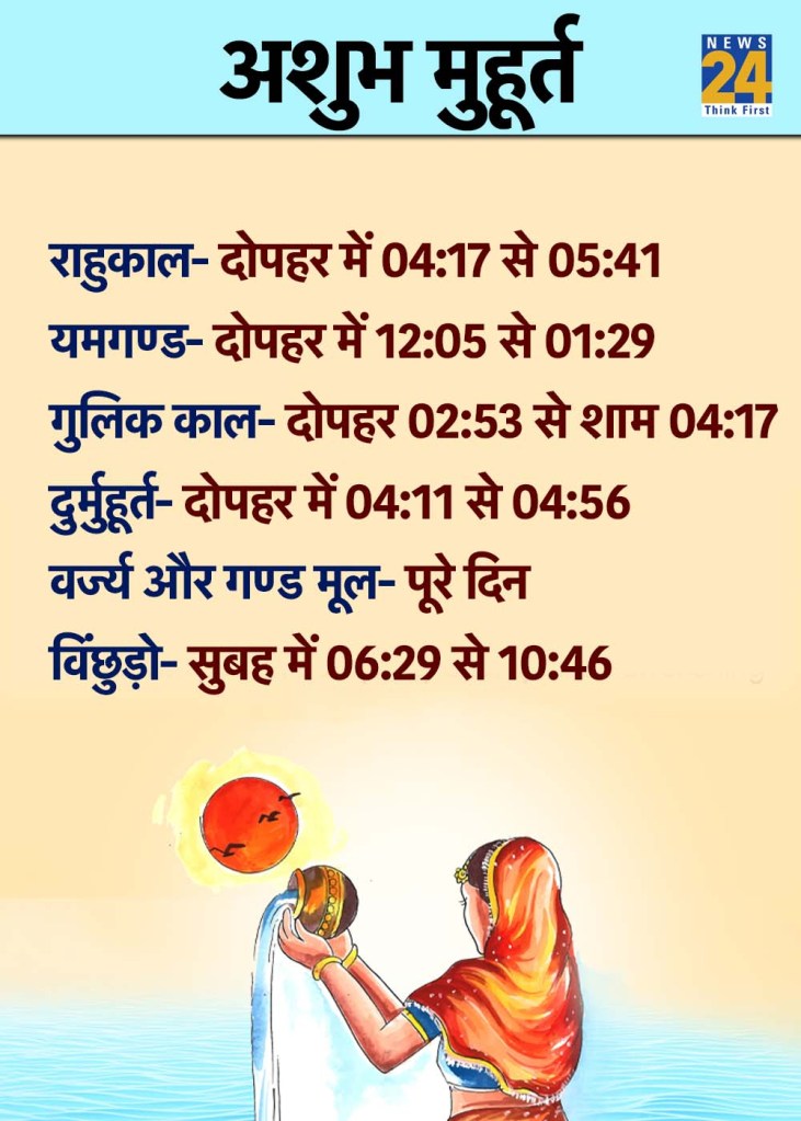 рдЖрдЬ рд╕реБрдмрд╣ 6 рдмрдЬрдХрд░ 5 рдорд┐рдирдЯ рддрдХ рдХрд╛рд░реНрддрд┐рдХ рдорд╛рд╣ рдХреЗ рд╢реБрдХреНрд▓ рдкрдХреНрд╖ рдХреА рдкрдВрдЪрдореА рддрд┐рдерд┐ рд░рд╣реЗрдЧреА, рдЬрд┐рд╕рдХреЗ рдмрд╛рдж рдХрд▓ рд╕реБрдмрд╣ рддрдХ рд╖рд╖реНрдареА рддрд┐рдерд┐ рд░рд╣рдиреЗ рд╡рд╛рд▓реА рд╣реИ. рдЗрд╕рдХреЗ рдЕрд▓рд╛рд╡рд╛ рдЖрдЬ рд╕реВрд░реНрдп рджреЗрд╡ рдХреЛ рд╕рдорд░реНрдкрд┐рдд рд░рд╡рд┐рд╡рд╛рд░ рдХреЗ рджрд┐рди рдкрд╢реНрдЪрд┐рдо рджрд┐рд╢рд╛ рд╢реВрд▓ рд░рд╣реЗрдЧреА.
