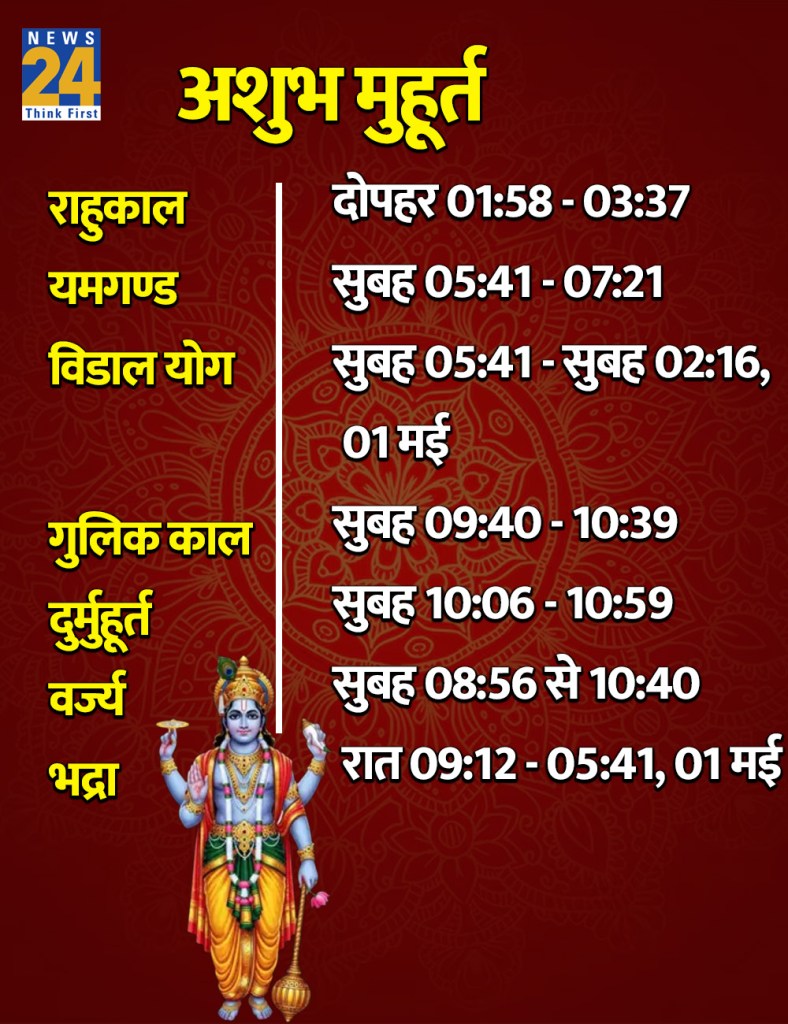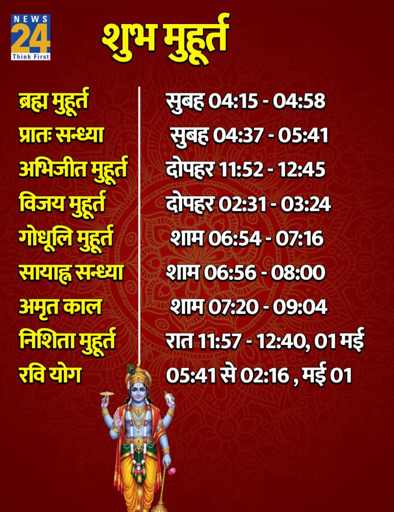 चन्द्रास्त – सुबह 04:59, 01 मई