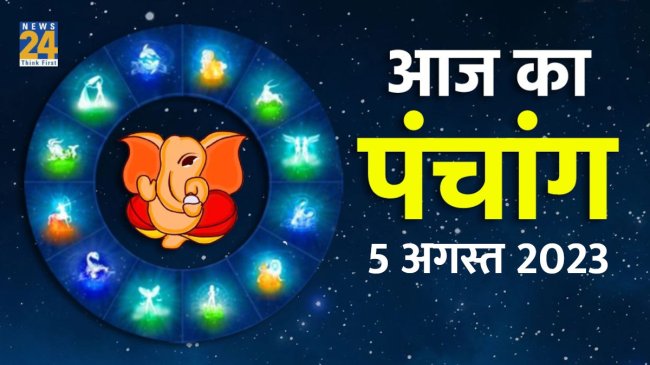 Aaj ka Panchang, 5 August 2023: आज शनिवार को श्रावण माह के कृष्ण पक्ष की पंचमी तिथि है। पूरे दिन उत्तर भाद्रपद और रेवती नक्षत्र रहेंगे। सूर्योदय सुबह 5.53 बजे एवं सूर्यास्त सायं 7.12 बजे होगा। चन्द्रोदय 10.00 बजे तथा चन्द्रास्त अगले दिन 9.34 बजे होगा।