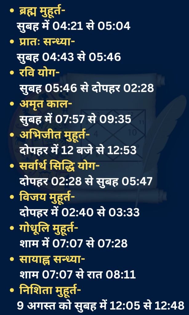8 अगस्त 2025 का पंचांग