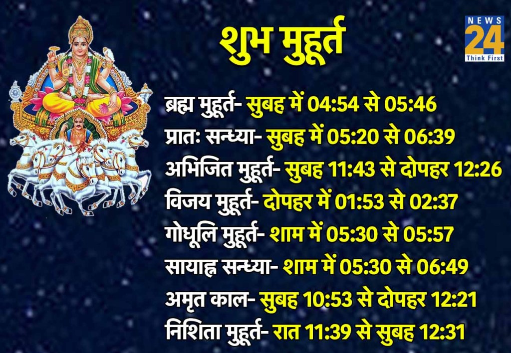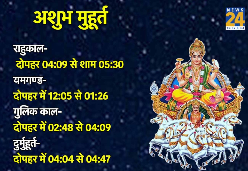 नक्षत्र की बात करें तो इस समय आद्रा चल रहा है, जो रात 08:04 मिनट तक रहेगा. आद्रा नक्षत्र के बाद पुनर्वसु नक्षत्र का आरंभ होगा, जो कल सुबह तक रहेगा. इसके अलावा आज दिनभर दिशा शूल पश्चिम रहेगी.