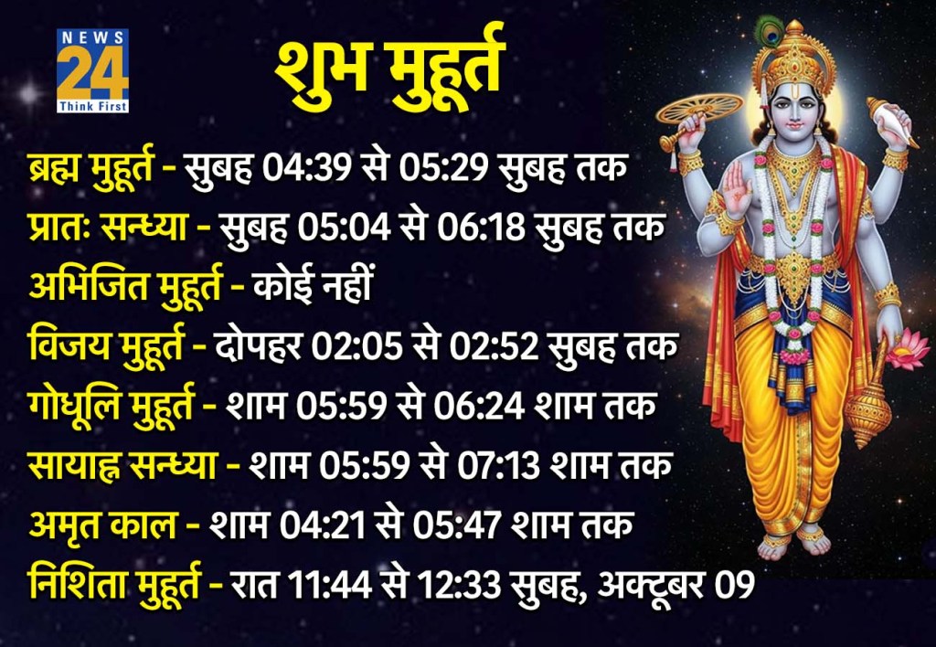 Aaj ka Panchang 9 October 2025: कल से हिंदू कैलेंडर के आठवें महीने कार्तिक मास की शुरुआत हो चुकी है. आज आपको 9 अक्टूबर के दिन का पंचांग बताते हैं. कार्तिक महीने में धन की देवी मां लक्ष्मी, जगत के पालनहार भगवान विष्णु, कृष्ण जी, धन के देवता कुबेर जी और धन्वंतरि की पूजा-अर्चना की जाती है. इस महीने में दान-पुण्य आदि कार्य भी करते हैं ताकि उन पर देवी-देवताओं की विशेष कृपा बनी रहे. आइए जानते हैं आज के शुभ समय, अशुभ समय, नक्षत्र, योग, करण और दिशा शूल आदि के बारे में.