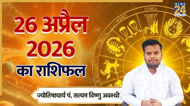 Aaj Ka Rashifal 26 April 2026: द्रिक पंचांग के अनुसार, आज 26 अप्रैल 2026 को वैशाख मास के शुक्ल पक्ष की दशमी तिथि है. साथ ही मघा नक्षत्र, वृद्धि योग और दिशाशूल पश्चिम रहेगी, जबकि राहुकाल दोपहर 4:30 बजे से शाम 6 बजे तक रहने वाला है. आइए अब पं. सत्यम विष्णु अवस्थी से जानते हैं 26 अप्रैल 2026, रविवार के 12 राशियों के राशिफल के बारे में.