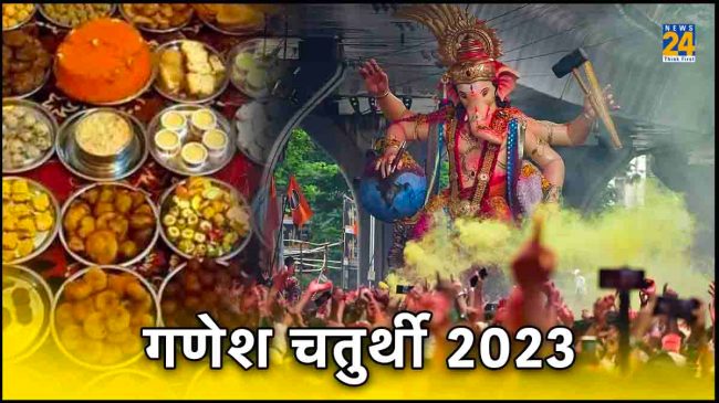 Ganesh Chaturthi 2023 Bhog: किसी भी पूजा-पाठ में श्री गणेश की पूजा की जाती है। भगवान गणेश को सभी देवी-देवताओं में आगे रखा गया है। सनातन धर्म में भगवान गणेश को खुश करने के लिए कई तरह के उपाय और पूजा-पाठ करते हैं। धार्मिक मान्यताओं के अनुसार, भगवान गणेश को प्रसन्न करने के लिए गणेश चतुर्थी का दिन सबसे अच्छा होता है। इस साल गणेश चतुर्थी का महापर्व 19 सितंबर 2023 दिन मंगलवार को पड़ रहा है। इस दिन विधि-विधान से पूजा करने गजानन खुश हो जाते हैं। अगर आप भी गणेश चतुर्थी के दिन गणपति बप्पा को खुश करना चाहते हैं। तो ज्योतिष शास्त्र में कुछ उपाय बताए गए हैं।