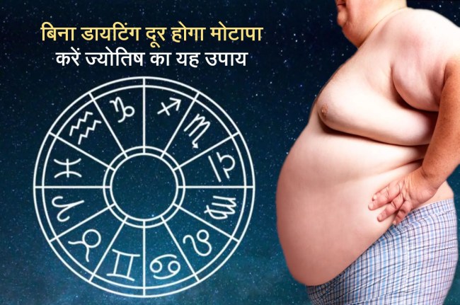 ज्योतिष में दो तरह का मोटापा बताया गया है। इनमें से पहली तरह का मोटापा ज्यादा खाने की वजह से होता है। दूसरी तरह का मोटापा शरीर की प्रवृत्ति के कारण होता है, अर्थात् हम इतना खाते नहीं हैं जितना ज्यादा मोटे हो जाते हैं। ऐसे में यदि ज्योतिष के आधार पर हम मोटापे का उपाय ढूंढ़ें तो लाभ हो सकता है।