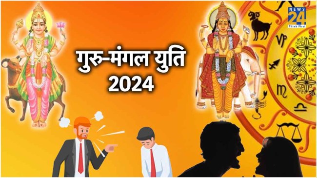 Guru Mangal Yuti 2024: ज्योतिष शास्त्र में बताया गया है कि ग्रहों के राशि और नक्षत्र परिवर्तन का प्रभाव सभी राशियों के जीवन पर पड़ता है। ग्रहों के मेहरबान होने से जहां लोग धनवान बन जाते हैं, तो वहीं कुछ लोगों की समस्याएं भी बढ़ती हैं। वैदिक पंचांग के अनुसार, गुरु बृहस्पति ग्रह इस समय वृषभ राशि में विराजमान हैं, जो 13 मई 2025 तक यही रहेंगे। आज से 6 दिन बाद मंगल देवता एक बार फिर अपनी चाल बदलेंगे। 12 जुलाई 2024 को शाम 07:12 मिनट पर मंगल देवता वृषभ राशि में गोचर करेंगे और 26 अगस्त 2024 तक यही रहेंगे।
