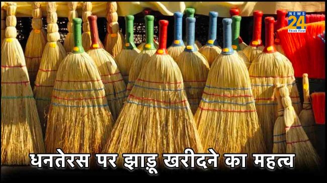 धनतेरस पर झाड़ू खरीदने का विशेष महत्व है। मान्यता है, कि धनतेरस में घर पर झाड़ू लाने से घर में बरकत आती है। आर्थिक परेशानियां भी खत्म हो जाती है। धनतेरस को झाड़ू के साथ-साथ सोने- चांदी के बने आभूषण खरीदने की मान्यता है। धनतेरस पर नई वस्तु खरीदना शुभ माना जाता है। सुख-समृद्धि आती हैं। मां लक्ष्मी की विशेष कृपा बनी रहती हैं।