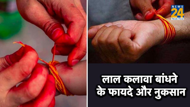 Red Kalawa Benefits: कलावा को हिंदू धर्म में शुभता का प्रतीक माना गया है। किसी भी पूजा-पाठ या धार्मिक अनुष्ठान लाल, पीले या गुलाबी रंग का कलावा बांधा जाता है। मान्यता है इस बांधने से देवी-देवताओं की कृपा प्राप्त होती है। साथ ही रह रक्षा-कवच का भी काम करता है। ज्योतिष शास्त्र में अलग-अलग रंगों के कलावे का अपना अलग महत्व है। मंगल से संबंधित दोष को शांत करने के लिए लाल कलावा बांधने की सलाह दी जाती है। लेकिन कई बार लोग बिना ज्योतिषी या पंडित की सलाह से लाल रंग का कलावा कलाई पर बांध लेते हैं। लेकिन ज्योतिष के जानकार बताते हैं कुछ राशि के जातकों को लाल कलावा नहीं बांधना चाहिए। क्योंकि ऐसा करने से उन्हें फायदे की जगह नुकसान हो सकता है।