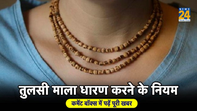 Tulsi Mala: सनातन धर्म में तुलसी के पौधे को लक्ष्मी माता का रूप दिया गया है। ऐसी मान्यता है कि तुलसी के पौधे में सुबह शाम जल अर्पित करने से घर में सुख-शांति आती है। इसके साथ ही तुलसी के पौधे में दिया जलाने का बहुत ही अधिक महत्व होता है। धार्मिक मान्यताओं के अनुसार, जो जातक अपने घर में तुलसी का पौधा लगाकर विधि-विधान से पूजा-पाठ करते हैं, उन्हें माता लक्ष्मी की आशीर्वाद प्राप्त होती है। इसके साथ ही घर का माहौल भी सकारात्मक ऊर्जा से खिल उठता है। इतना ही नहीं, घर में रहने वाले लोगों की आर्थिक उन्नति भी जमकर होती है। हलांकि तुलसी की माला पहनने के लिए शास्त्रों में खास नियम बताए गए हैं। आइए जानते हैं कि तुलसी की माला पहनने से पहले किन बातों का ध्यान रखना चाहिए।