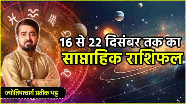 वहीं, 22 दिसंबर को शुक्र ग्रह द्वारा नक्षत्र परिवर्तन किया जाएगा। 16 से 22 दिसंबर के बीच चंद्र ग्रह द्वारा भी राशि और नक्षत्र परिवर्तन किया जाएगा। ऐसे में 12 राशियों पर कैसा असर पड़ सकता है। सभी राशियों के लिए 16 दिसंबर से 22 दिसंबर तक का सप्ताह कैसा रहने वाला है? इसके बारे में ज्योतिषाचार्य प्रतीक भट्ट द्वारा बताए गए साप्ताहिक राशिफल के माध्यम से जान सकते हैं। नौकरी, व्यापार, आर्थिक स्थिति, पारिवारिक और संबंध के मामले में 12 राशियों के लिए पूरा सप्ताह कैसा रहेगा? ये जानने के साथ शुभ तिथि, शुभ अंक और उपाय भी जान लेते हैं।