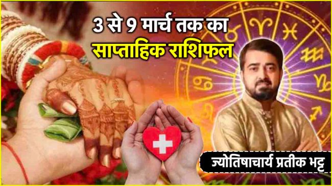 Weekly Horoscope 3 March to 9 March 2025: मार्च महीने के पहले सप्ताह की शुरुआत हो चुकी है। 12 राशियों के लिए 3 मार्च से 9 मार्च तक का पूरा सप्ताह कैसा रहने वाला है? किस राशि के लिए समय थोड़ा कठिन और किस राशि के लिए फलदायी रहने वाला है। इसके बारे में ज्योतिषाचार्य प्रतीक भट्ट द्वारा बताए गए साप्ताहिक राशिफल से जाना जा सकता है। पारिवारिक जीवन, दांपत्य जीवन और सेहत के मामले में 9 मार्च तक दिन कैसे रहेंगे? 12 राशियों के लिए इस सप्ताह कौन से उपाय अपनाने लाभकारी रहेंगे? आइए 3 मार्च से 9 मार्च तक साप्ताहिक राशिफल जानते हैं।