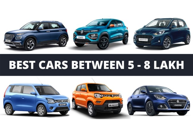 मारुति सेलेरियो से लेकर मारुति सुजुकी विटारा ब्रेज़ा तक, सभी उल्लिखित कारें 5 लाख से 8 लाख की रेंज में आती हैं। 5 लाख से 7 लाख रुपये के बजट में मारुति सुजुकी 7, होंडा 2, हुंडई 5, किआ 1, निसान 1, टोयोटा 1, रेनो 2 और महिंद्रा 1 वाहन शामिल हैं।