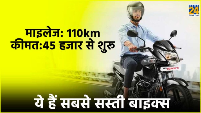 Cheapest bikes with 110km mileage: इस समय देश में कम बजट में कई एंट्री लेवल बाइक्स आपको आसानी से मिल जायेगी। ये बाइक्स न सिर्फ बेहतर माइलेज ऑफर करती हैं बल्कि इन्हें चलाना भी आसान है। इतना ही नहीं इनका रख-रखाव भी सस्ता पड़ता है। डेली यूज़ के लिए बेस्ट ऑप्शन साबित होती हैं। अगर आपको भी एक ऐसी ही बाइक की तलाश है तो यहां हम आपको तीन सबसे सस्ती बाइक्स के बारे में जानकारी दे रहे हैं।