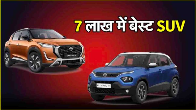 Best SUV under 7 Lakh: भारतीय कार बाजार में कॉम्पैक्ट SUV सेगमेंट अब काफी बड़ा हो गया है। कई अच्छे ऑप्शन इस समय मौजूद हैं। यह सेगमेंट 5.99 लाख रुपये से शुरू हो जाता है। इस सेगमेंट में टाटा पंच काफी पसंद की जाती है और यह सबसे ज्याद बिकने वाला मॉडल भी है। पंच से मुकाबला करने के लिए वैसे तो कई गाड़ियां मौजूद है लेकिन निसान Magnite इसे कड़ी टक्कर देती है। दोनों गाड़ियों की बॉडी भी काफी मजबूत है। पंच को जहां 5 स्टार सेफ्टी रेटिंग मिली है तो वहीं मैग्नाईट को 4 स्टार सेफ्टी रेटिंग मिली है। यहां हम आपको बता रहे हैं कि इन दोनों में कौन सी SUV सही मायनों में वैल्यू फॉर मनी मोडल है…