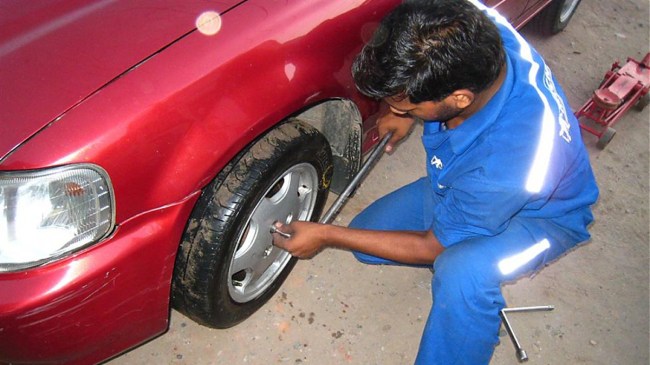 рд╕реНрдЯреЗрдк 3: рдЕрдм рд╕рд╣реА рдЯрд╛рдпрд░ рдХреЛ рд╕рд╛рд╡рдзрд╛рдиреА рд╕реЗ рдлрд┐рдЯ рдХрд░реЗрдВред рдЬрдм рдЯрд╛рдпрд░ рдареАрдХ рд╕реЗ рд▓рдЧ рдЬрд╛рдП рддрдм рдПрдХ-рдПрдХ рдирдЯ рдХреЛ рдлрд┐рдЯ рдХрд░реЗрдВред рдзреНрдпрд╛рди рд░рд╣реЗ рд╕рднреА рдирдЯреНрд╕ рдХреЛ рдПрдХ рджрдо рдЯрд╛рдЗрдЯ рдХрд╕реЗрдВред рдкрдВрдЪрд░ рдЯрд╛рдпрд░ рдХреЛ рд░рд┐рдкреЗрдпрд░ рдХрд░рд╡рд╛ рд▓реЗрдВ рддрд╛рдХрд┐ рдмрд╛рдж рдореЗрдВ рдЬрд░реВрд░рдд рдкрдбрд╝рдиреЗ рдкрд░ рдпрд╣ рдЯрд╛рдпрд░ рдХрд╛рдо рдЖ рд╕рдХреЗред