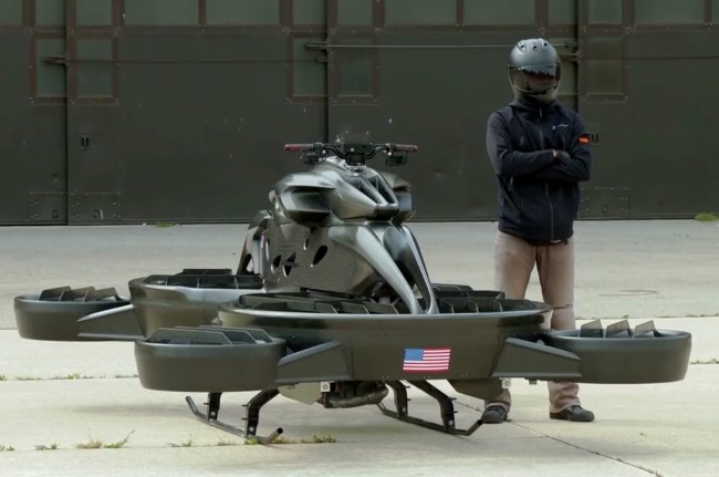 A flying bike from a Japanese startup. Will cost around $800K in the U.S. I suspect it will be used mainly by police forces around the world; leading to some interesting new chase sequences in movies… pic.twitter.com/1yUxZJPyH9