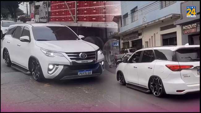 वायरल हो रहे वीडियो में सड़क पर सफेद रंग की टोयोटा फॉर्च्यूनर जाती हुई दिख रही है। उसमें काले रंग के अलॉय लगाए गए हैं। कार को मॉडिफाई किया गया है, जिससे उसके लुक्स में बदलाव आ गया है, वह पहले से अधिक लंबी दिख रही है। उसका ग्राउंड क्लीयरेंस भी बदल गया गया है। वीडियो में दिख रह कार हाई एंड फॉर्च्यूनर की बाजए लो राइज सेडान लग रही है।