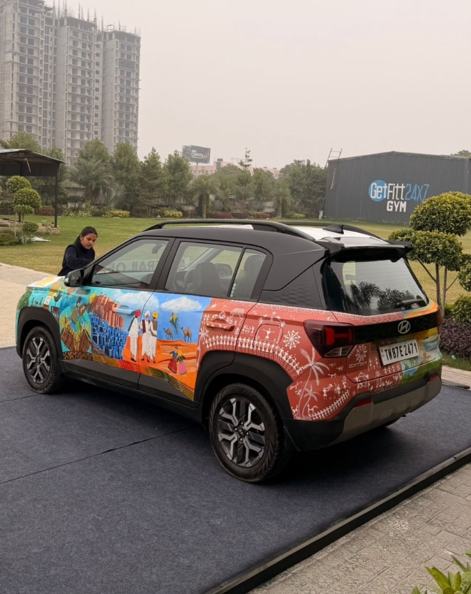 इस पूरी यात्रा की सबसे खास बात यह है कि Hyundai की लोकप्रिय SUV EXTER को एक चलता-फिरता कैनवास बनाया गया है. हर राज्य में वहां के स्थानीय कलाकार अपनी पारंपरिक कला को EXTER के अलग-अलग हिस्सों पर प्रस्तुत करते हैं. जैसे-जैसे यात्रा आगे बढ़ती है, गाड़ी पर भारत की अलग-अलग कलाओं की झलक दिखने लगती है.