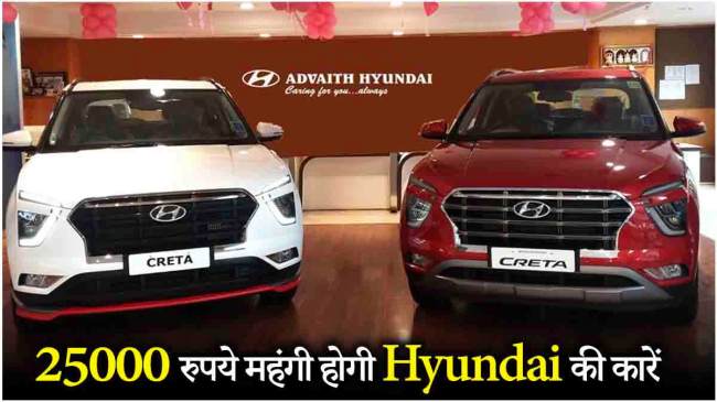 Hyundai Price hike: कंपनी हुंडई मोटर इंडिया (Hyundai) की नई कार खरीदना अब महंगा पड़ने वाला है। हुंडई ने ऐलान किया है कि 1 जनवरी 2025 से उसकी सभी गाड़ियां 25,000 रुपये तक महंगी हो जाएंगी । इनपुट कॉस्ट, एक्सचेंज रेट का असर और लॉजिस्टिक्स कॉस्ट में बढ़ोतरी है के कारण ही कंपनी को कीमतें बढ़ानी पड़ी हैं। अब ऐसे में आपके पास 31 दिसंबर तक का मौका है हुंडई की कारों पर डिस्काउंट पाने का…क्योंकि उसके बाद आपको ज्यादा कीमत चुकानी होगी।