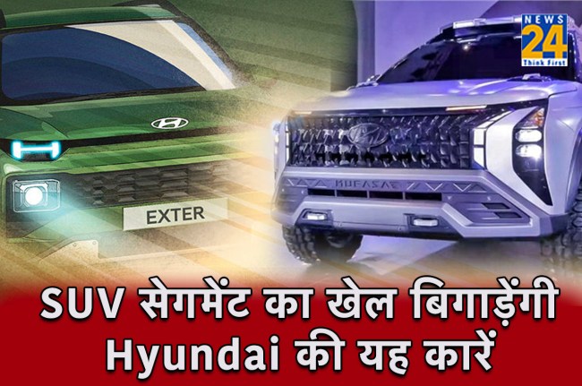 Hyundai Car: हुंडई अकसर अपनी कारों में नया प्रयोग करता है। इसी कड़ी में कंपनी अपनी दो नई SUV को लेकर आने वाली है। इन धाकड़ एसयूवी के नाम हैं Exter और Mufasa. दोनों ही कंपनी की न्यू जनरेशन कार हैं जिनमें भविष्य को ध्यान में रखकर स्मार्ट फीचर्स दिए गए हैं।