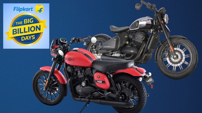 Flipkart Sale: देश में ऑनलाइन शॉपिंग का क्रेज इतना बढ़ गया है कि अब बाइक्स भी ऑनलाइन बिकने लगी हैं। देश में फेस्टिव सीजन शुरू होने वाला है। फ्लिपकार्ट बिग बिलियन डेज 2024 सेल के दौरान अब जावा और येजदी की बाइक्स भी बिक्री के लिए उपलब्ध हो चुकी हैं। खास बात ये है कि ग्राहकों को डिस्काउंट भी दिया जा रहा है। Flipkart सेल में और क्या-क्या फायदे आपको मिलने वाले हैं? आइये जानते हैं।