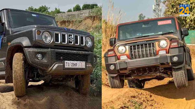 Mahindra Thar vs Maruti Jimny Ground Clearance details in hindi: कार का ग्राउंड क्लीयरेंस यह तय करता है कि वह खराब रास्तों पर कैसे परफॉर्म करेगी। अकसर वीकेंड पर घूमने जाने वाले या ऑफरोडिंग के दीवाने बेहतर ग्राउंड क्लीयरेंस वाली कार तलाशते हैं। जब ऑफरोडिंग का नाम आया है तो कारों में पहला नाम Mahindra Thar का आएगा। Mahindra Thar को बाजार में किफायती कीमत में मिलने वाली Maruti Jimny टक्कर देती है। लेकिन थार के मुकाबले Jimny का Ground Clearance कम है।