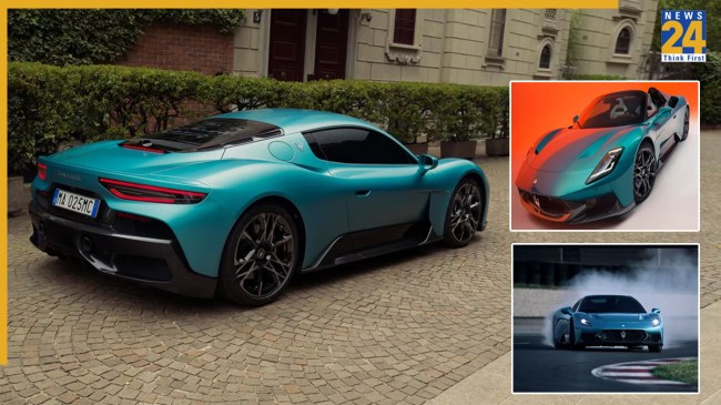 Maserati MC Pura Coupe-Cielo Launch in India: Maserati ने अपनी मिड-इंजिन सुपरकार MC Pura भारत में लॉन्च कर दी है. यह V6 इंजन वाली लो-स्लंग कार Coupe और Cielo (ड्रॉप-टॉप) वेरिएंट में उपलब्ध है. Coupe की शुरुआती कीमत 4.12 करोड़ रुपये (एक्स-शोरूम) है, जबकि Cielo की कीमत 5.12 करोड़ रुपये (एक्स-शोरूम) रखी गई है. MC Pura, MC20 का नया वर्जन है और इसमें कुछ डिजाइन बदलाव किए गए हैं.