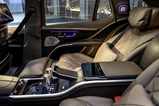 Mercedes-Maybach EQS 680 में कंपनी ने नई टेक्नोलॉजी और फीचर्स दिए हैं। इंटीरियर में आरामदायक सीट हैं। सीट के आसपास विंडो, एसी और अन्य सुविधाओं के स्विच दिए गए हैं। बोनट पर मर्सिडीज थ्री-पॉइंट स्टार देखने को मिलेगा। इसके फ्रंट में ब्लैक पैनल है। इसमें 3डी लुक में सिग्नेचर क्रोम-प्लेटेड स्लैट्स हैं।