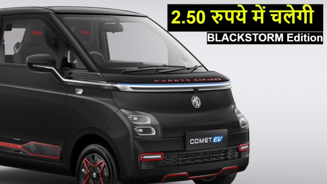 MG COMET BLACKSTORM Edition: भारत में इलेक्ट्रिक कारों की मांग तेजी से बढ़ रही है। कार कंपनियां भी हर हाल में अपनी बिक्री को बढ़ाने की कोशिश में लगी हुई हैं। JSW MG Motor India ने भी भारत में अपनी सबसे सस्ती इलेक्ट्रिक कार Comet EV का BLACKSTORM एडिशन बाजर में पेश किया है। जिसे आप डीलरशिप पर जाकर सिर्फ 11,000 रुपये में बुक कर सकते हैं। आइये जानते हैं क्या कुछ खास और नया आपको इस इस एडिशन में देखने को मिलेगा। MG Comet EV का ब्लैक स्टॉर्म एडिशन कॉमेट के टॉप वेरिएंट में मिलेगा।