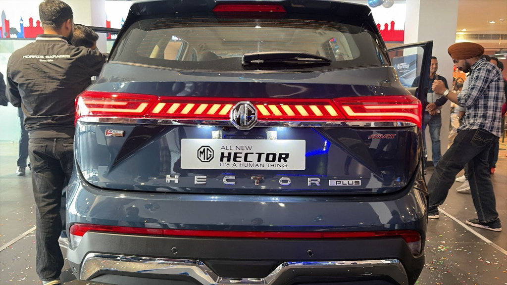 नई MG Hector Facelift में सामने की तरफ अपडेटेड ग्रिल दी गई है, जिसमें अब हेक्सागोनल स्लैट्स देखने को मिलते हैं. बंपर पहले जैसे ही रखे गए हैं, लेकिन ड्यूल-टोन बॉडी कलर और ब्लैक व्हील आर्च क्लैडिंग इसे थोड़ा फ्रेश लुक देती है. LED हेडलाइट और DRL सेटअप पुराने मॉडल जैसा ही है. साइड क्लैडिंग, शार्क-फिन एंटीना और नए डिजाइन के 18-इंच अलॉय व्हील्स भी इसमें शामिल हैं. इसके अलावा, कंपनी ने Celadon Blue और Pearl White जैसे नए कलर ऑप्शन भी जोड़े हैं.