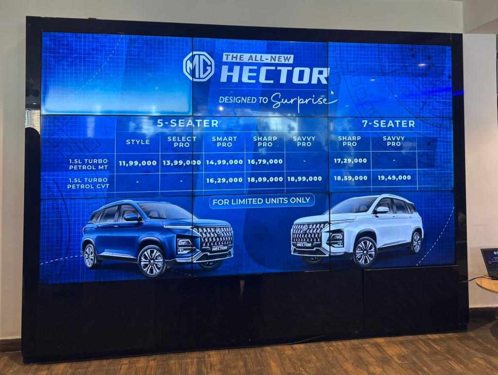 MG Hector Facelift को कंपनी ने 5 और 7-सीटर कॉन्फिगरेशन में पेश किया है. कुल मिलाकर इसमें 6 वेरिएंट मिलते हैं. 5-सीटर में Style, Select Pro, Smart और Smart Pro वेरिएंट हैं, जबकि 7-सीटर में Savvy Pro और Sharp Pro ऑप्शन दिए गए हैं. यह SUV 1.5 लीटर टर्बो पेट्रोल इंजन के साथ मैनुअल और CVT गियरबॉक्स ऑप्शन में आती है.