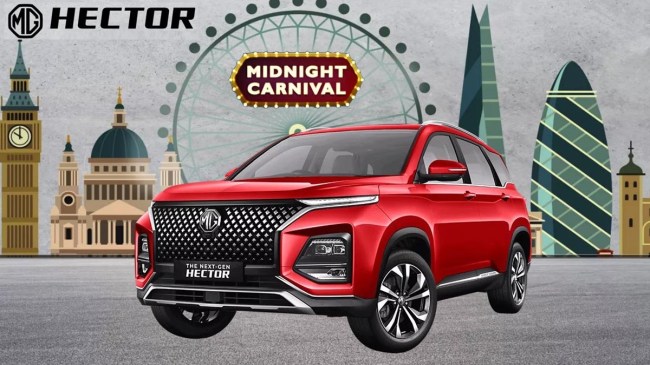 MG Hector Midnight Carnival: अपने ग्राहकों को हमेशा कुछ ना कुछ एक्स्ट्रा देने के लिए में एमजी मोटर इंडिया सबसे आगे रहती है। अब एमजी ने मिडनाइट कार्निवल की शुरुआत कर दी है, जिसमें कंपनी ने ग्राहकों के लिए अपनी एसयूवी Hector पर एक से बढ़कर एक ऑफर पेश किये हैं। 11 अप्रैल से 30 जून तक चलने वाला यह कार्निवल वीकेंड पर आधी रात तक शोरूम खुले मिलेंगे। इसमें ग्राहकों का पूरा ध्यान रखा गया है।