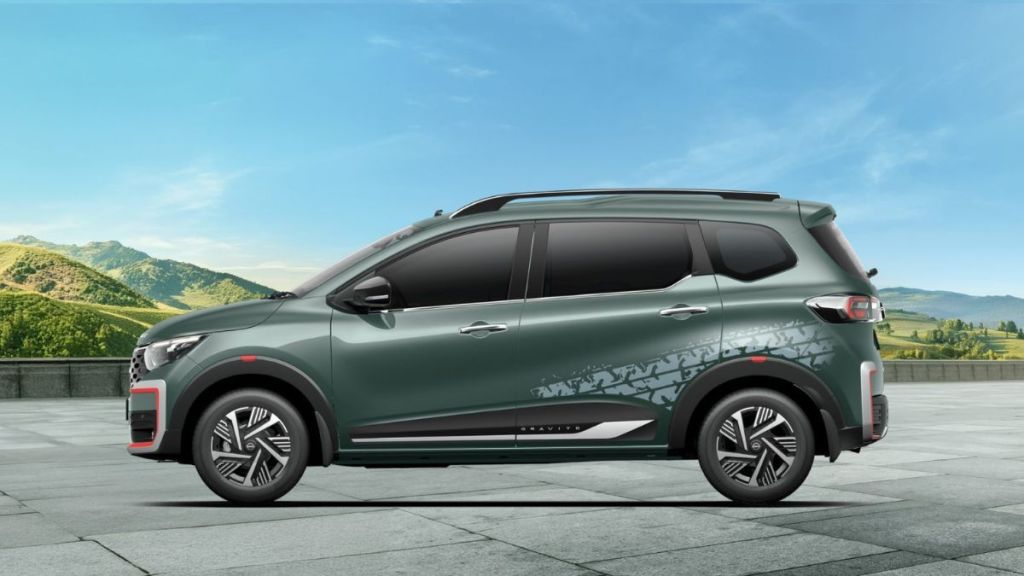 Gravite को Renault Triber वाले प्लेटफॉर्म पर बनाया गया है, लेकिन इसके लुक में कई बदलाव किए गए हैं. इसमें अलग DRL डिजाइन, नया हनीकॉम्ब ग्रिल, नए अलॉय व्हील्स, C-शेप सिल्वर इंसर्ट वाले बंपर और बोनट व टेलगेट पर ‘GRAVITE’ बैज दिया गया है. यह कार Forest Green, Onyx Black, Blade Silver, Snow White और Metallic Grey जैसे रंगों में उपलब्ध है. Launch Edition में ऑरेंज एक्सेंट और साइड पर व्हाइट टायर प्रिंट डेकल भी मिलता है.
