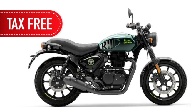 रॉयल एनफील्ड हंटर 350 टैक्स फ्री हो चुकी है। इस बाइक को कैंटीन स्टोर्स डिपार्टमेंट यानी CSD से भी खरीदे जा सकते हैं। इस बाइक पर 28% की जगह सिर्फ 14% ही टैक्स देना पड़ेगा। यहां पर टैक्स फ्री का सीधा फायदा सिर्फ देश की सेवा करने वाले जवानों को मिलेगा। हंटर 350 CSD ग्राहकों के लिए है, लेकिन आम ग्राहकों को इसका फायदा नहीं मिलेगा।