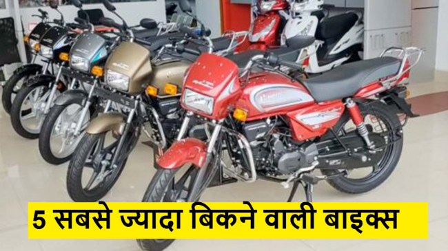 Top 5 Best-selling bikes: देश में 100cc से लेकर 350cc इंजन वाली बाइक्स की डिमांड लगातार बढ़ रही है। हर महीने टू-व्हीलर कंपनियां अपनी सेल्स रिपोर्ट जारी करती हैं। इस बार भी बेस्ट सेलिंग बाइक्स की लिस्ट आ चुकी है। हीरो मोटोकॉर्प से लेकर बजाज ऑटो की बाइक्स एक बार बेस्ट सेलिंग लिस्ट में शामिल हुई हैं। यहां हम भारत की 5 सबसे ज्यादा बिकने वाली बाइक्स के बारे में जानकारी दे रहे हैं।