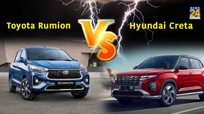 Toyota Rumion VS Hyundai Creta: इंडियन कार बाजार में इन दिनों एसयूवी गाड़ियों की सबसे अधिक डिमांड है। हाल ही में Toyota ने अपनी नई सबसे सस्ती एसयूवी कार Rumion लॉन्च की है। वहीं, हुंडई की इस सेगमेंट में क्रेटा धाकड़ कार है। जानिए इन गाड़ियों के फीचर और कीमत।