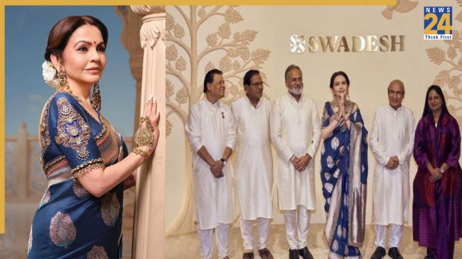 स्वदेश ऑनलाइन स्टोर ने शुक्रवार को अपने इंस्टाग्राम हैंडल पर इवेंट से नीता अंबानी का लुक शेयर किया. अपने कपड़ों और मौजूदगी के ज़रिए, नीता अंबानी ने भारत के कारीगरों को सेलिब्रेट करने की अहमियत पर जोर दिया.
