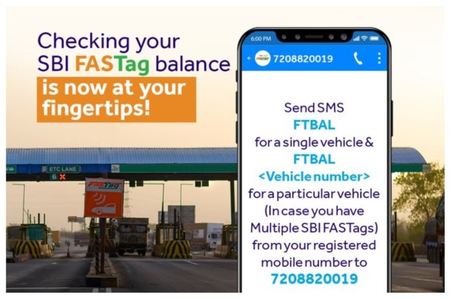 Dear SBI FASTag Customer, send an SMS to 7208820019 from your registered mobile number to quickly know your SBI FASTag balance. #SBIFastag #SBI #AmritMahotsav pic.twitter.com/mDQQgDl7Mv