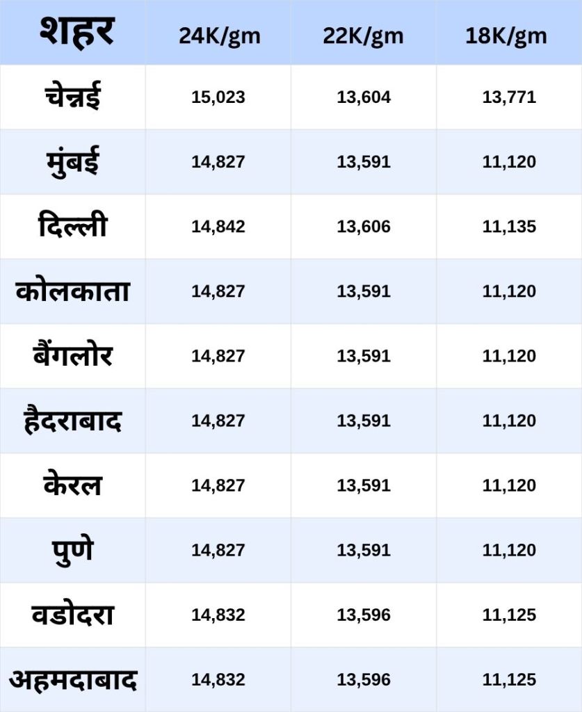 प्रमुख शहरों में सोने के भाव (प्रति 10 ग्राम):