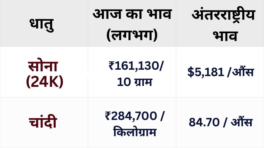 आज घरेलू बाजार में सोने की कीमतें 1.61 लाख रुपये प्रति 10 ग्राम के स्तर को पार कर गई हैं, वहीं चांदी भी 2.84 लाख रुपये प्रति किलोग्राम के पार निकल चुकी है.