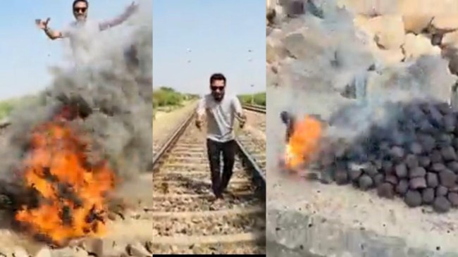 रेलवे ट्रैक पर ब्लैक स्नेक पटाखे जला रहा यूट्यूबर