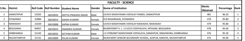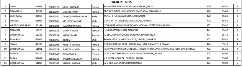 рдХреБрд▓ 26 рдЯреЙрдкрд░реНрд╕ рдХреА рд▓рд┐рд╕реНрдЯ рдЬрд╛рд░реА рдХреА рдЧрдИ рд╣реИ, рдЬрд┐рдирдореЗрдВ рд╕реЗ 19 рд▓рдбрд╝рдХрд┐рдпрд╛рдВ рд╣реИрдВред рдЖрд░реНрдЯреНрд╕ рдФрд░ рдХреЙрдорд░реНрд╕ рд╕реНрдЯреНрд░реАрдо рдореЗрдВ рдЫрд╛рддреНрд░рд╛рдПрдВ рдЯреЙрдкрд░ рд░рд╣реА рд╣реИрдВ, рдЬрдмрдХрд┐ рд╕рд╛рдЗрдВрд╕ рд╕реНрдЯреНрд░реАрдо рдореЗрдВ рдЫрд╛рддреНрд░ рдиреЗ рдЯреЙрдк рдХрд┐рдпрд╛ рд╣реИред