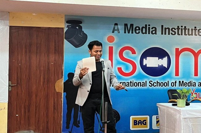 नई दिल्ली: गिनीज बुक ऑफ वर्ल्ड रिकॉर्ड में अपना नाम शामिल करने वाले भारत के सबसे मशहूर जादूगरों में से एक सुशील जायसवाल ने आज न्यूज 24 के मीडिया इंस्टीट्यूट आईसोम्स (ISOMES)में शिरकत की। यहां पर उन्होंने अपनी ट्रिक्स और अदा से सभी को मंत्रमुग्ध कर दिया। सुशील जायसवाल ने आते ही छात्रों में जोश भर दिया। सुशील ने यहां पर अपने जादू से तो छात्रों को मोहित किया ही साथ ही अपनी प्रोत्साहित करने वाली बातों से सभी का मार्गदर्शन भी किया।