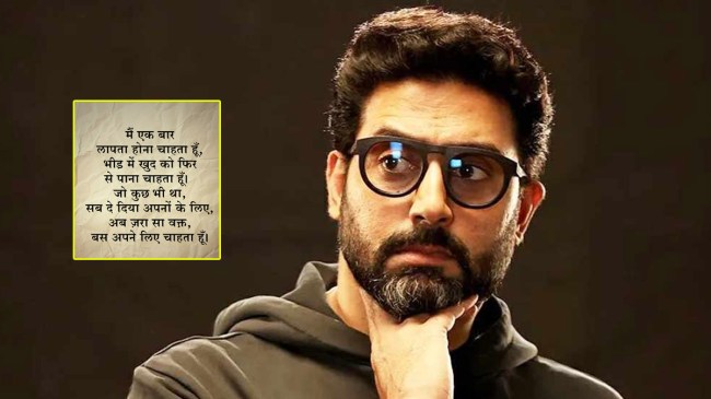 Abhishek Bachchan Cryptic Post: बॉलीवुड एक्टर अभिषेक बच्चन ने हाल ही में एक क्रिप्टिक पोस्ट शेयर कर सभी का अटेंशन ग्रैब कर लिया था। जूनियर बच्चन ने सोशल मीडिया पर कुछ ऐसा कह दिया कि लोगों ने तरह-तरह के कयास लगाने शुरू कर दिए। अक्सर लोग खुद को ढूंढने की बातें करते हैं, लेकिन अभिषेक बच्चन सोशल मीडिया पर अपने लापता होने की बात कर रहे थे। ऐसे में हर कोई कंफ्यूज हो गया कि आखिर मामला क्या है? सबसे पहले तो ये जान लेते हैं कि अभिषेक बच्चन ने क्या पोस्ट किया था?