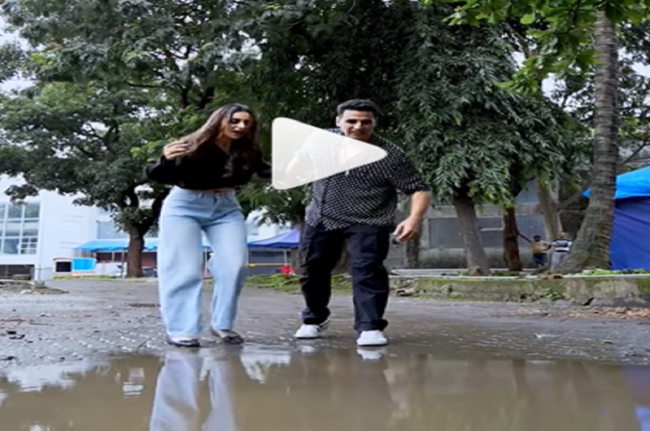 वीडियो में, अक्षय रकुल को बरगलाते हुए उन्हें सड़क पर जमे पानी के बीच में ले आते हैं और फिर उन्हें छोड़कर भाग जाते हैं। इस दौरान बैकग्राउंड में फिल्म का गाना ‘साथिया’ सुनाई दे रहा है।