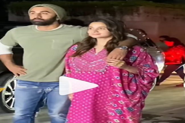पैपराजी वीरल भयानी ने अपने इंस्टाग्राम पेज पर इनका स्पॉटेड वीडियो साझा किया, जिसमें गुलाबी काफ्तान और प्लाजो सेट पहने आलिया (Alia Bhatt in Pink Kaftan Set) काफी खूबसूरत दिख रही हैं। वहीं रणबीर कपूर ने ऑलिव ग्रीन कलर की टी-शर्ट और डेनिम जीन्स के साथ मैचिंग कैप पेयर किया। दोनों ने मिलकर पैपराजी के लिए काफी स्वीट पोज दिए और अपनी मुस्कान से फैंस का दिन बना दिया।